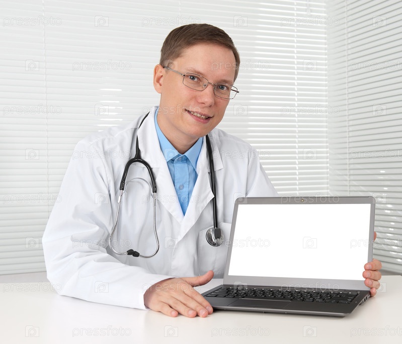 Доктор с ноутбуком за столом