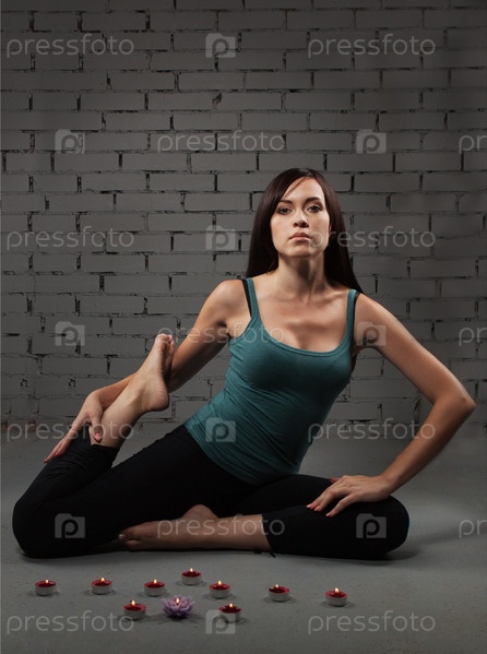Молодая женщина занимается йогой