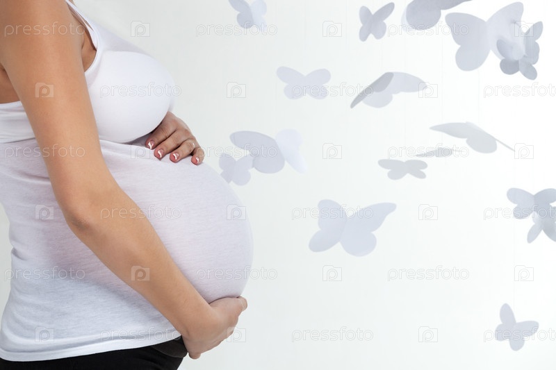 Живот беременной женщины с бабочками