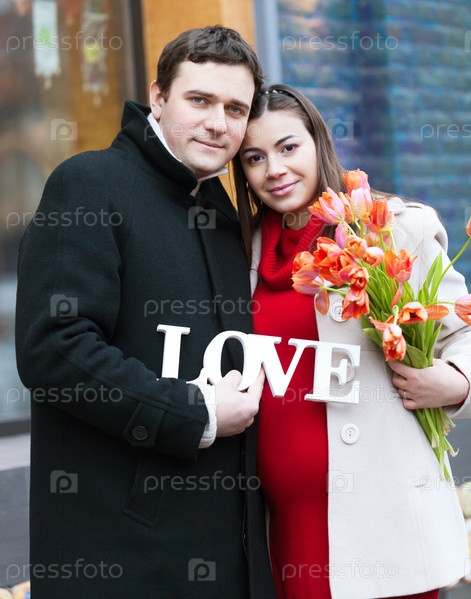 Счастливая молодая беременная женщина с мужем