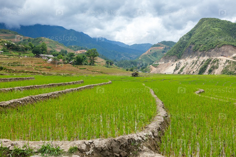 Рисовые поля террасами (рис-сырец) у села Кат Кат, вблизи Сапы, Муй Не