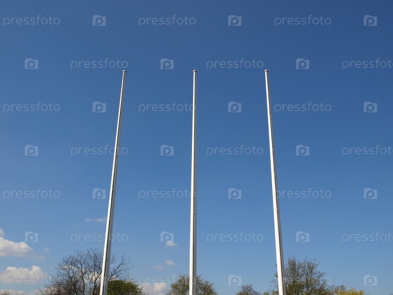Флагштоки на фоне синего неба