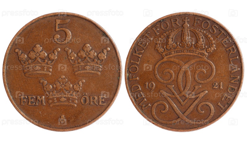 Античная монета Швеции 1921 года, изолированная на белом фоне