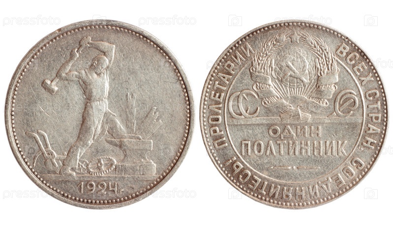 Античные монеты СССР 1924 года, изолированные на белом фоне