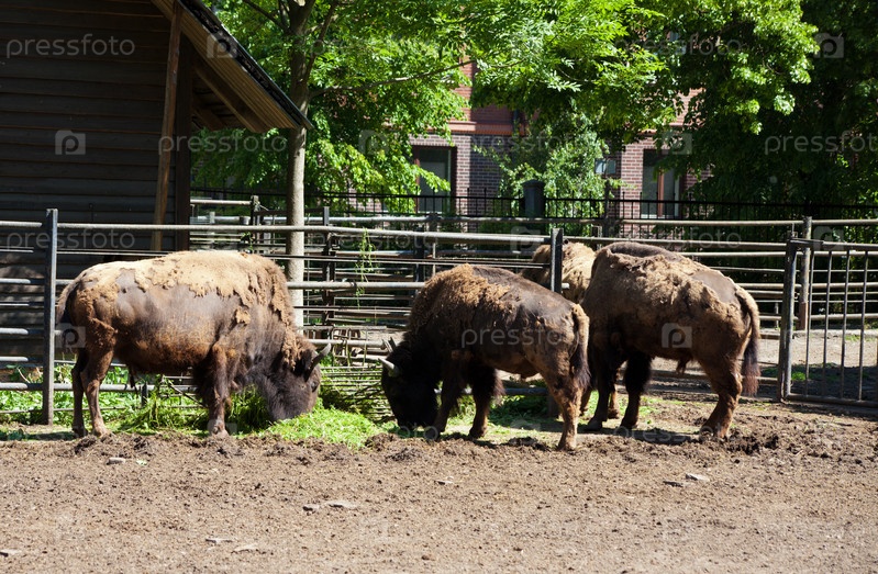 Три зубра в городском зоопарке