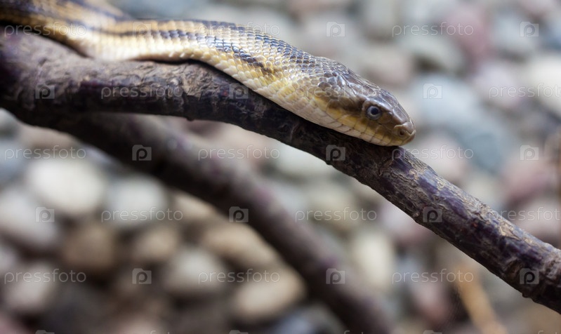 Опасная змея на ветке в городском зоопарке
