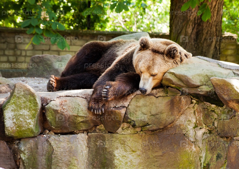 Большой бурый медведь в городском зоопарке в солнечный летний день