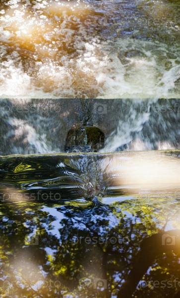 Яркий водопад в солнечный летний день в городском парке
