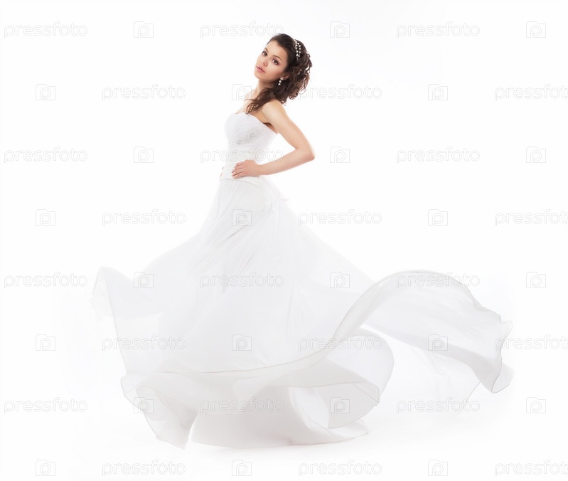 Красивая бегущая невеста в белом свадебном платье