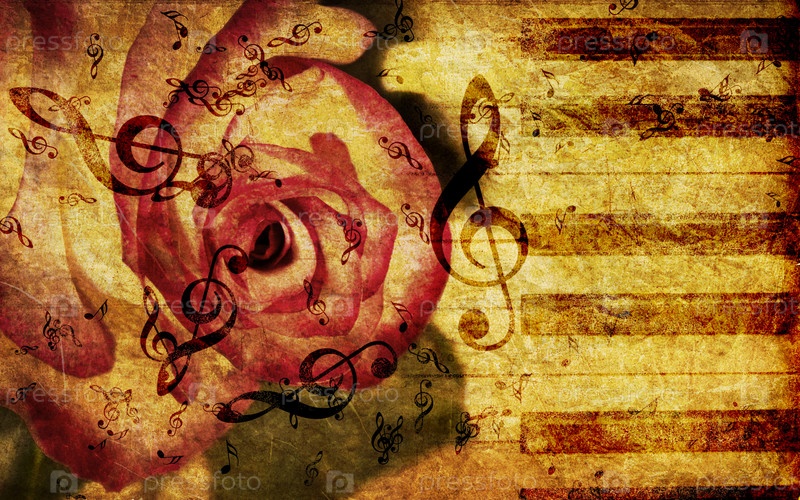 Винтажный фон с розой и нотами