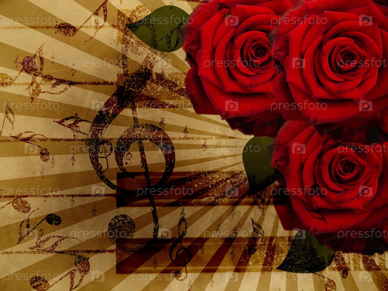 Винтажный фон с розой и нотами