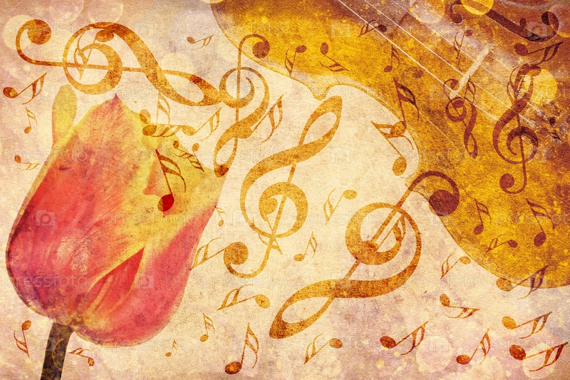 Тюльпан и ноты на винтажном фоне