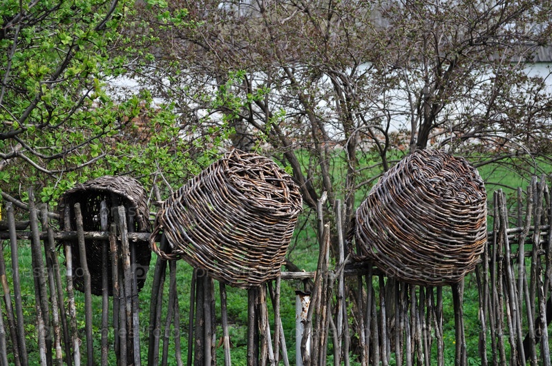 Плетеный забор с корзинами