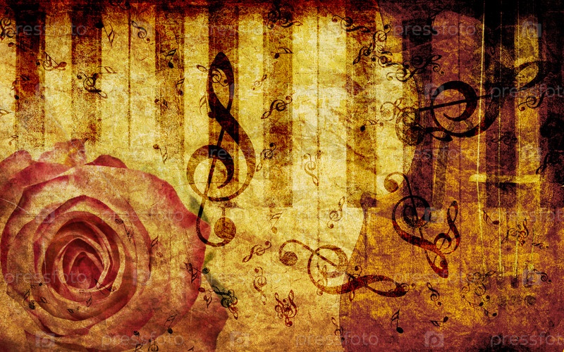 Винтажный фон с розой и нотами
