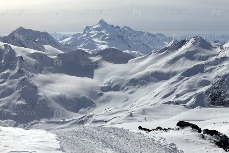 Горы в снегу в пасмурную погоду