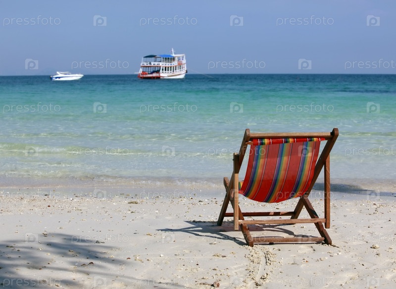 Одинокий шезлонг на пляже