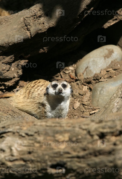 Сурикат выглядывает из норы. Зоопарк в Новой Зеландии