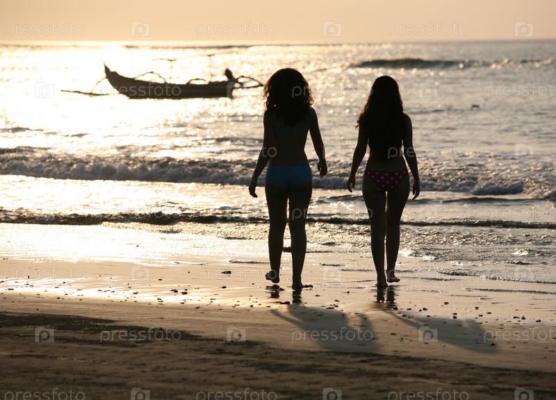 Силуэты двух девушек на берегу океана