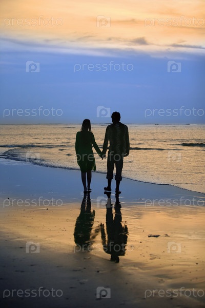 Пара на закате на берегу Индийского океана