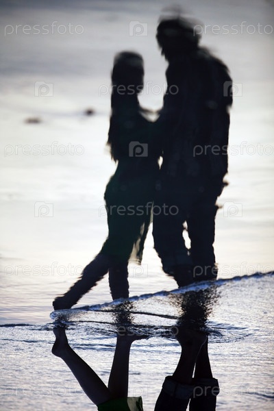 Пара на берегу Индийского океана на закате