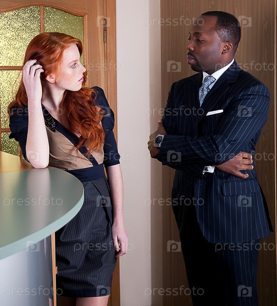 Деловые мужчина и женщина стоят в офисе