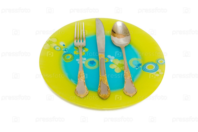 Вилка, нож и ложка лежат на тарелке