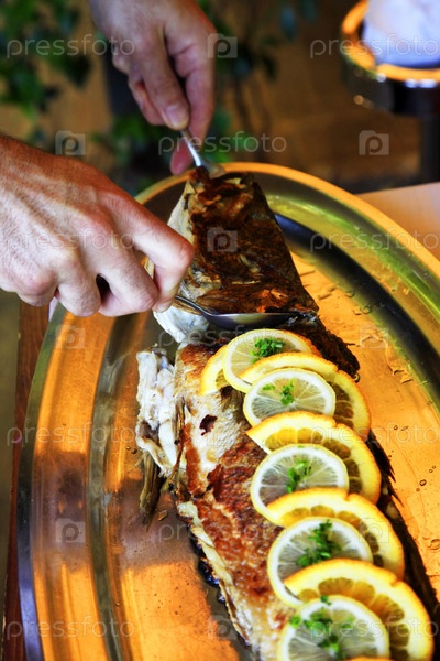 Рыба с лимоном в ресторане