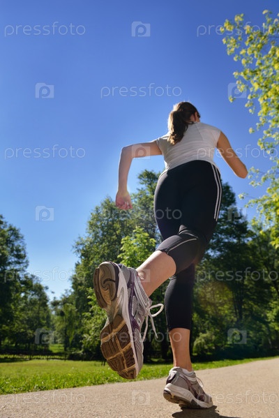 Молодая красивая женщина на утренней пробежке в парке