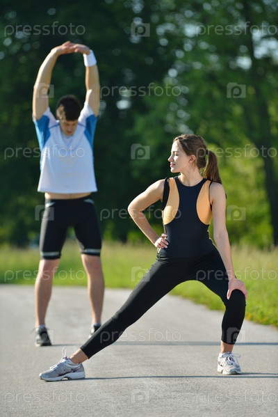 Люди делают растяжку после пробежки