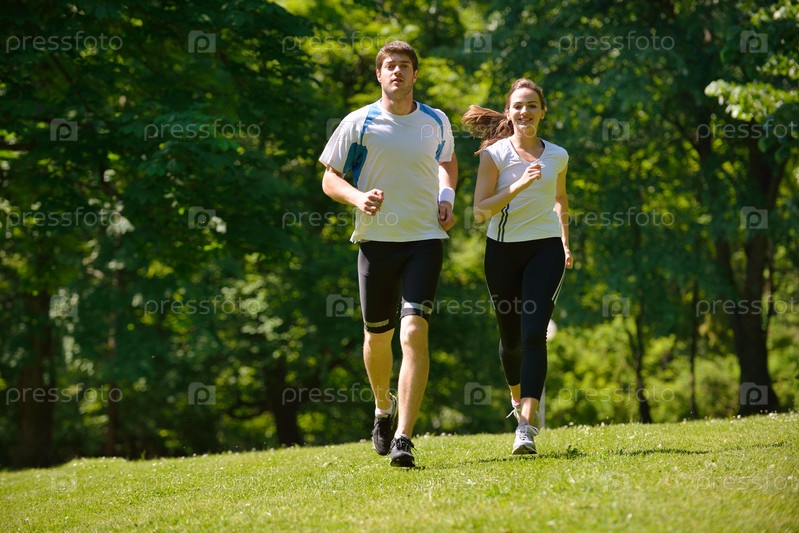 Пара бегает трусцой