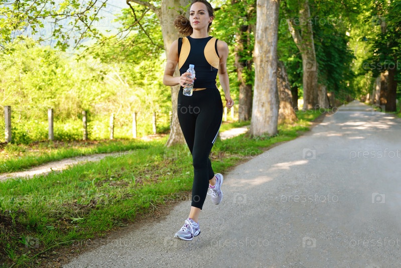 Молодая красивая женщина на утренней пробежке в парке