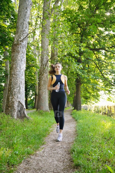 Молодая красивая женщина на утренней пробежке в парке