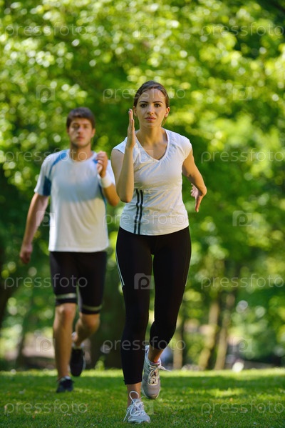Пара бегает трусцой
