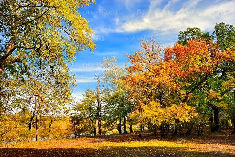 Осенние деревья на берегу реки