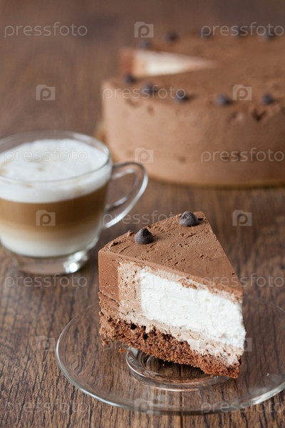 Кусок тройного шоколадного торта