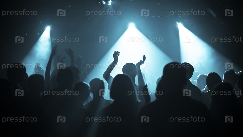Силуэты танцующей толпы на рок-концерте
