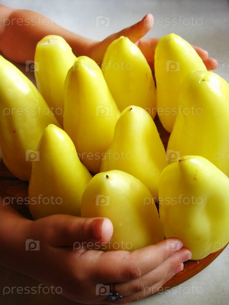 Руки, обнимающие желтый перец