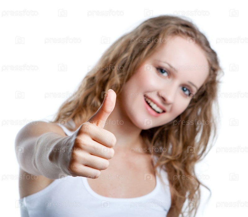 Девушка показывает палец вверх