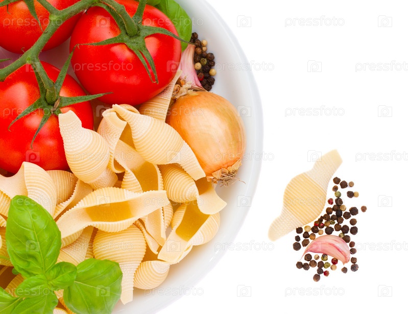 Сырая итальянская паста в тарелке