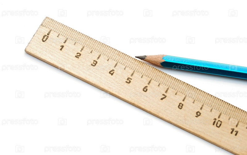 Линейка и карандаш крупным планом на белом