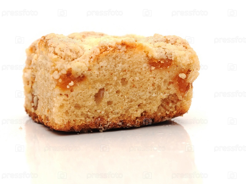 Кусочек свежеиспеченного пирога на белом фоне
