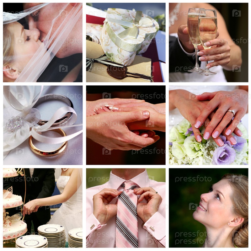 Коллаж из девяти свадебных фотографий