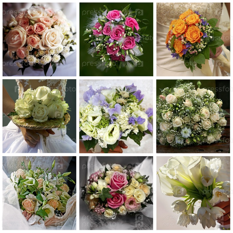 Коллаж из девяти свадебных фотографий