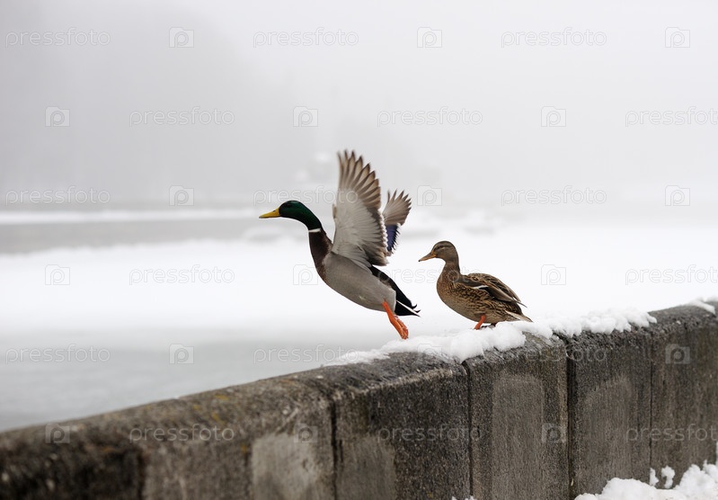 Утки зимой на городской реке