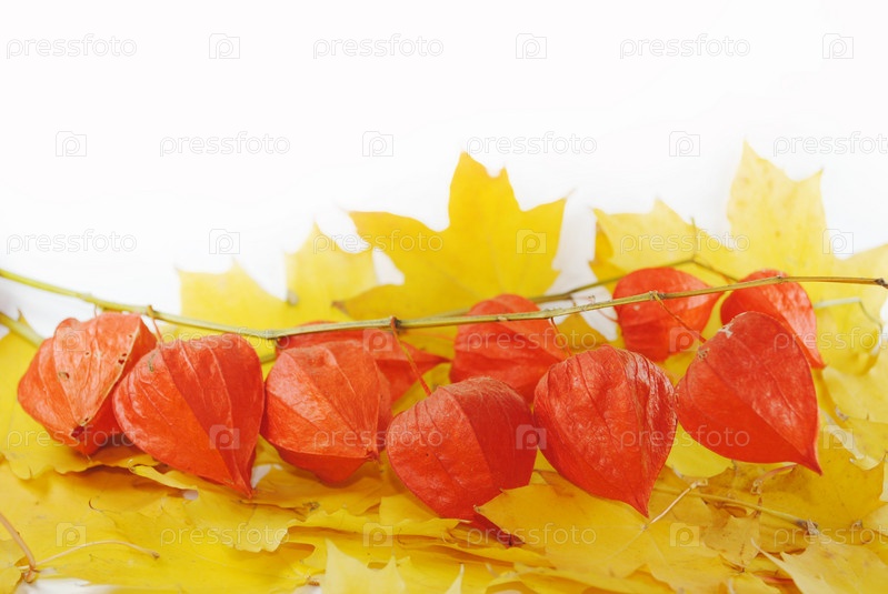 Физалис на желтых кленовых листьях
