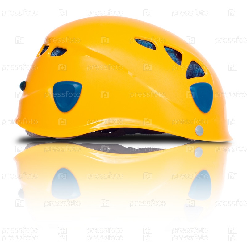 Желтая каска на белом фоне