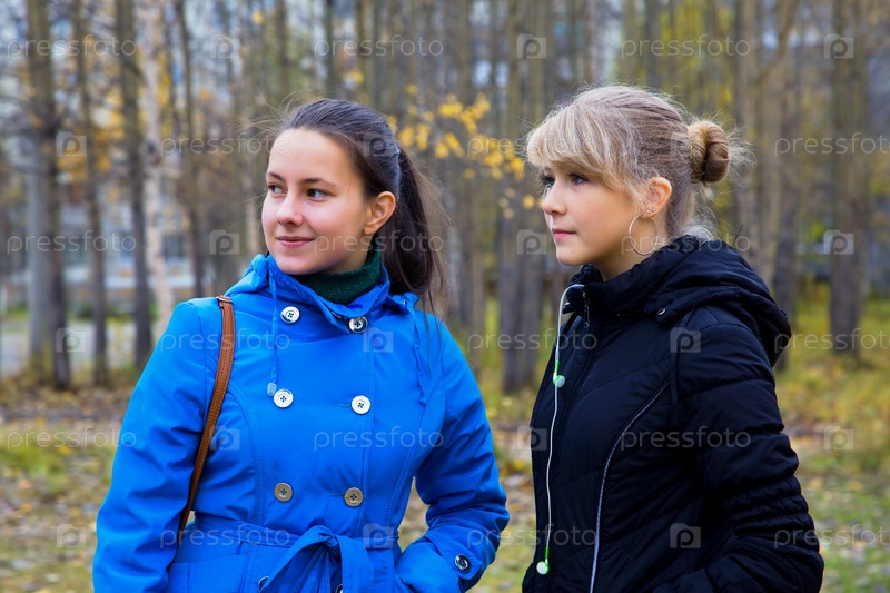Две девушки, гуляющие в осеннем парке