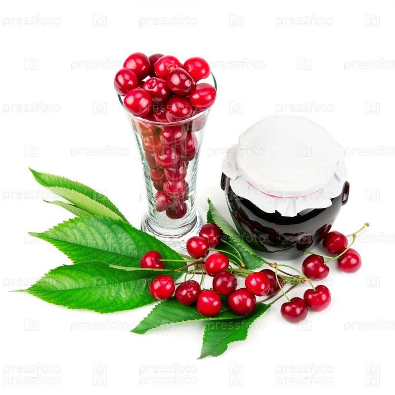 Ягоды и вишневое варенье в банке