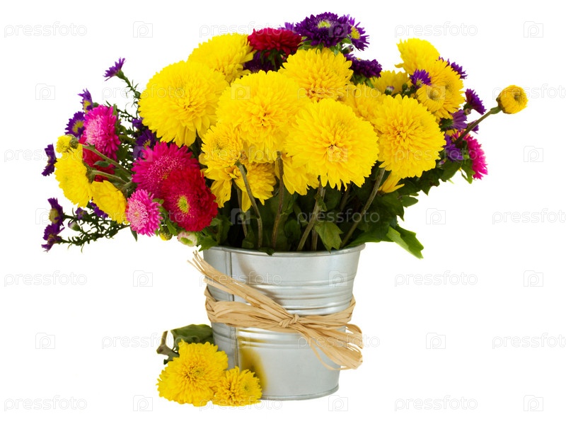 Букет из астры и хризантем в вазе