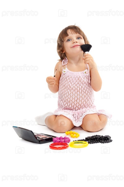 Очаровательная маленькая девочка с косметикой и украшениями